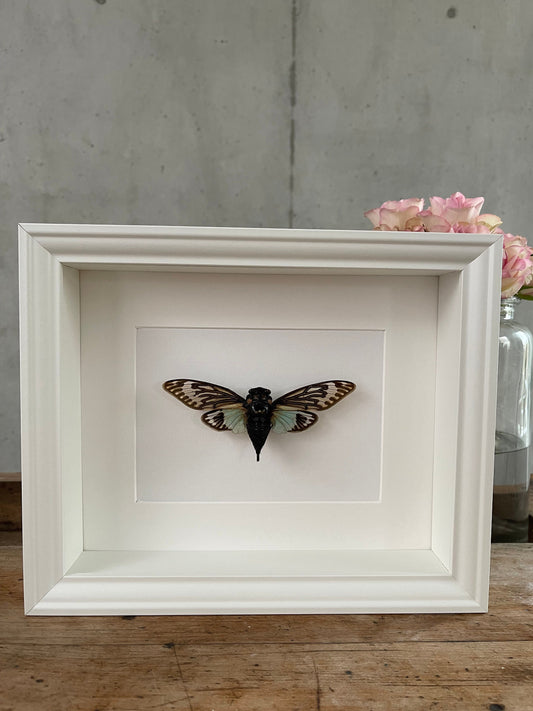 BLAU GEFLÜGELTE ZIKADE - Tosena splendida - Insekt im Rahmen - Präparat - Schmetterling - Falter
