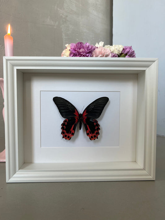 SCHARLACHROTER SCHWALBENSCHWANZ -PAPILIO rumanzovia - Schmetterling im Rahmen - Präparat - Insekt