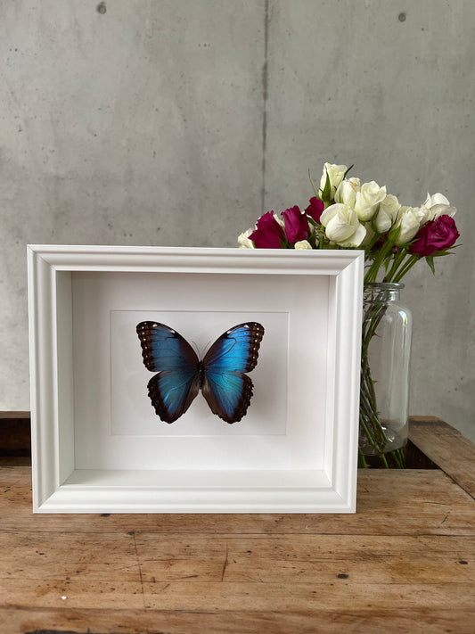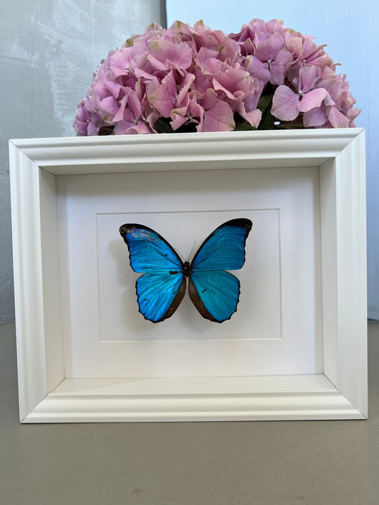 HIMMELSFALTER - MORPHO MENELAUS - Schmetterling im Rahmen - Präparat - Insekt