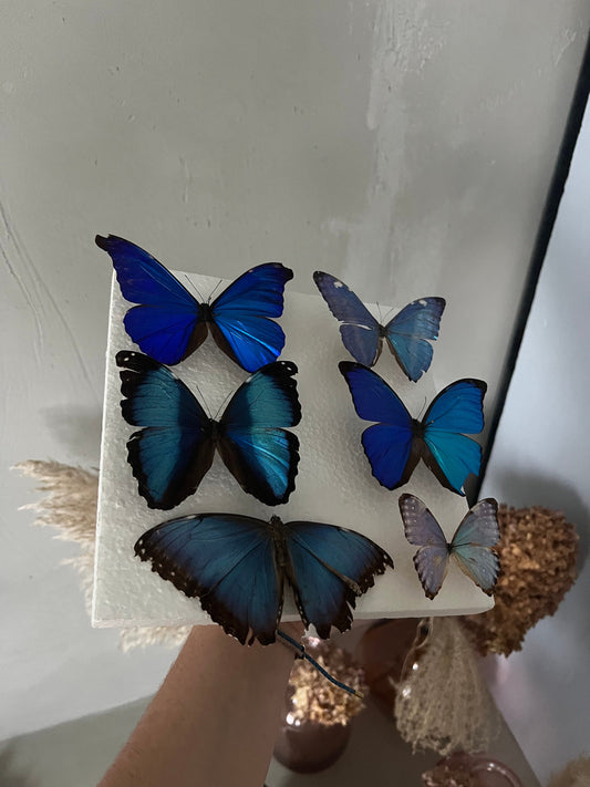 MORPHO MYSTERY - MORPHO portis, helenor, deidamia, marcus, rhetenor, menelaus - Schmetterling im Rahmen - Präparat - Insekt